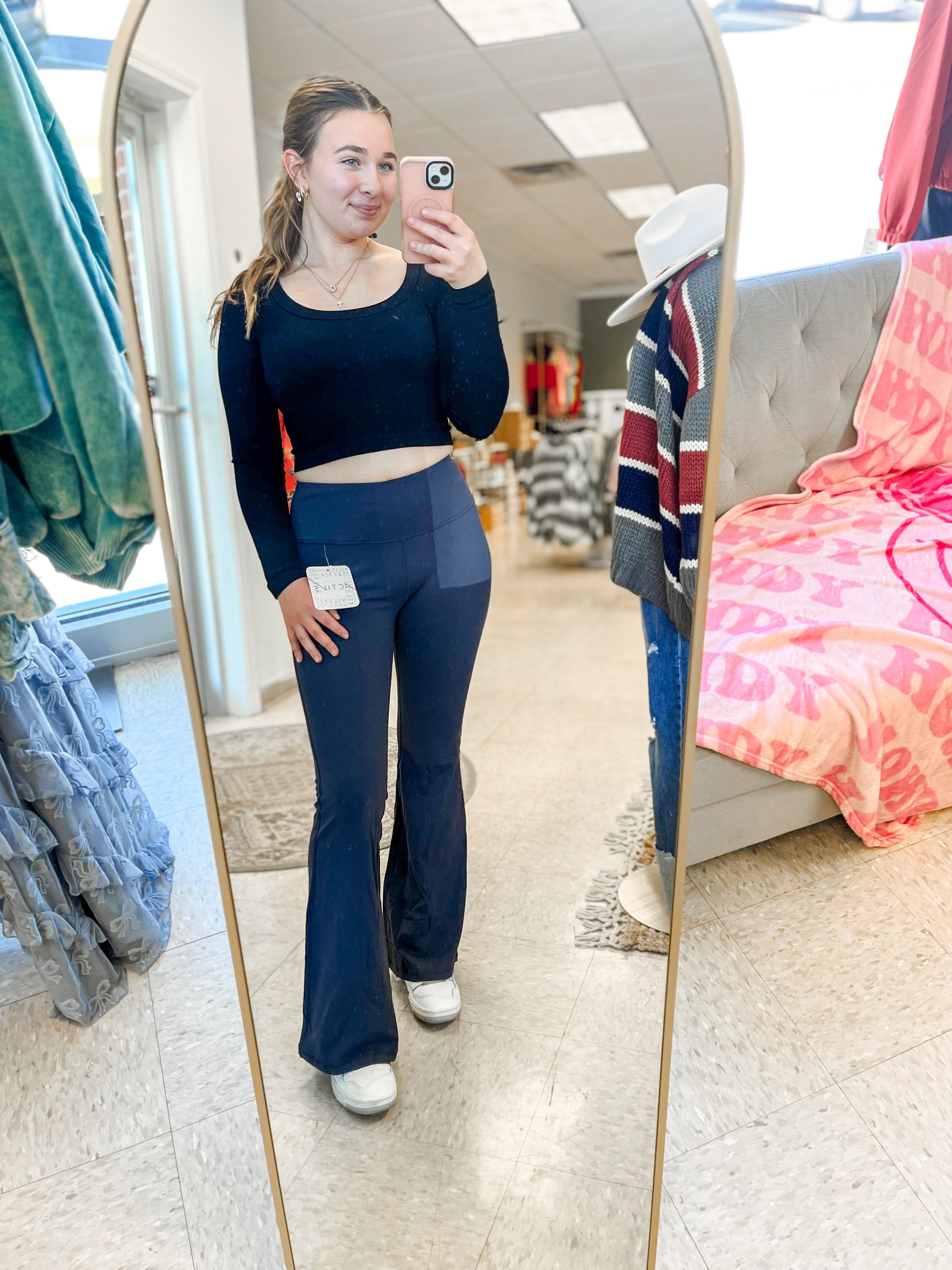 Introducing our Smokey Blue Flare Leggings - the perfect blend of style and comfort. Made with soft and stretchy fabric, these flare leggings offer a flattering fit and lasting comfort. Own the day in these must-have leggings that add a touch of flare to your wardrobe.